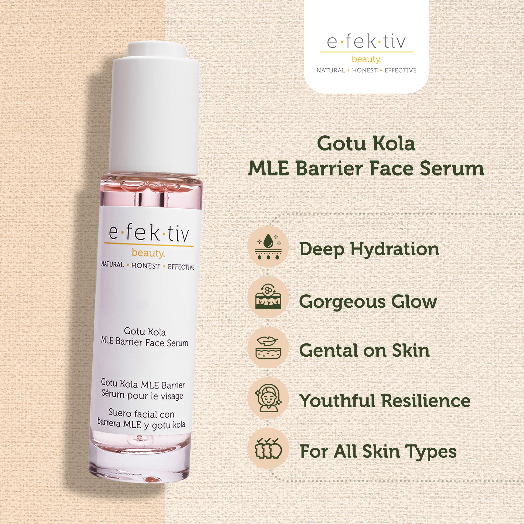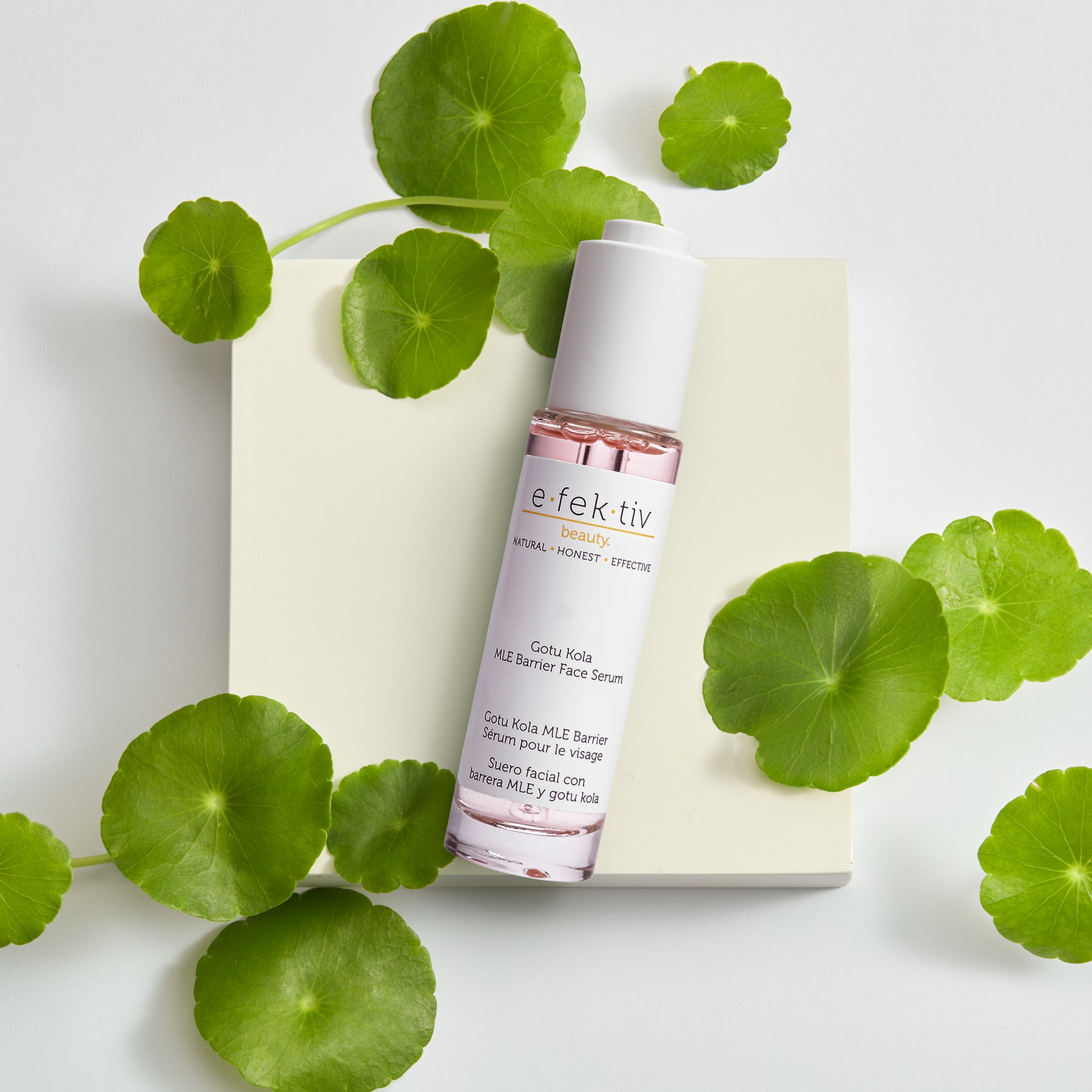 Our amazing product – the efektiv beauty Gotu Kola MLE Barrier Face Serum. This serum is a real treat for your skin, making it tight, firm, and radiant.