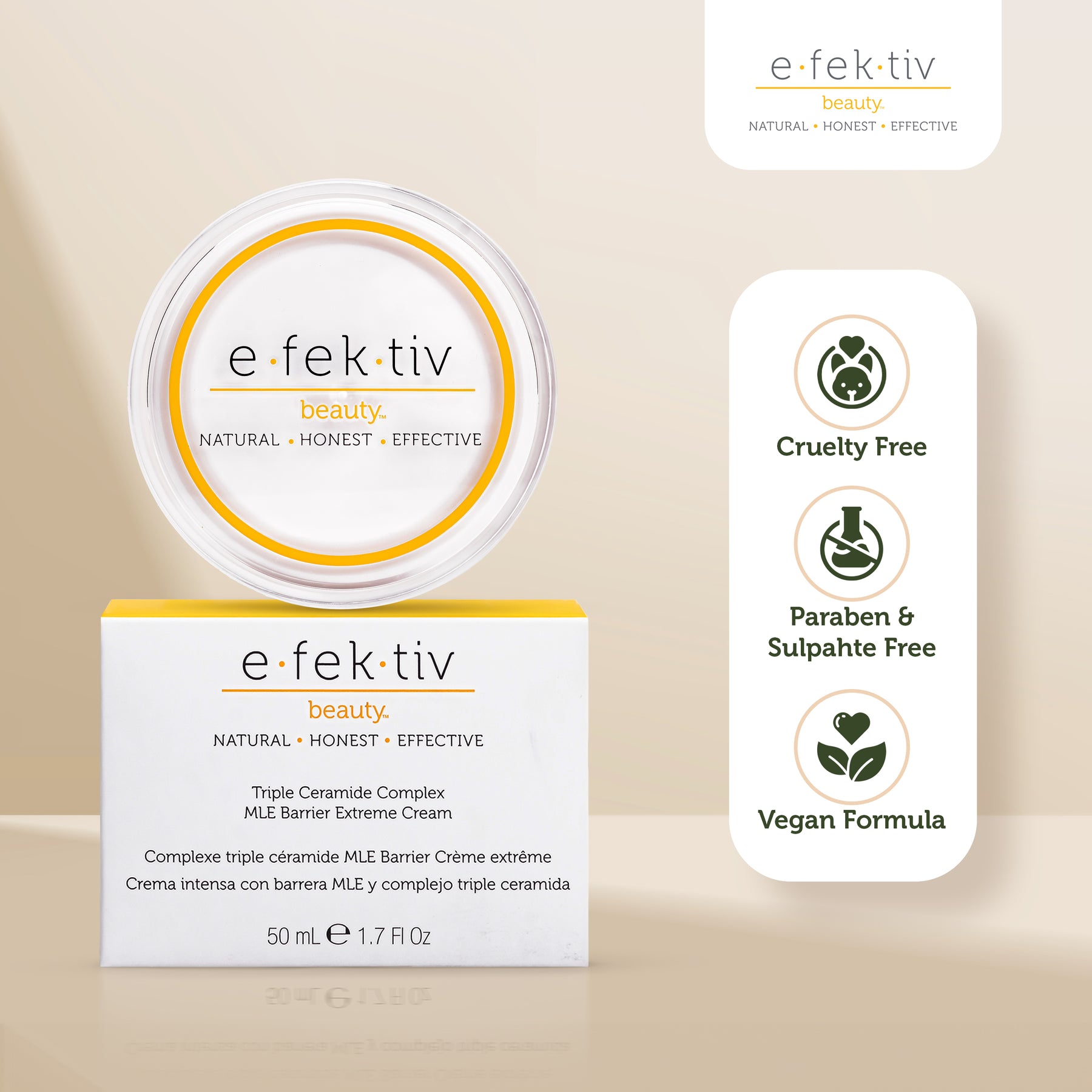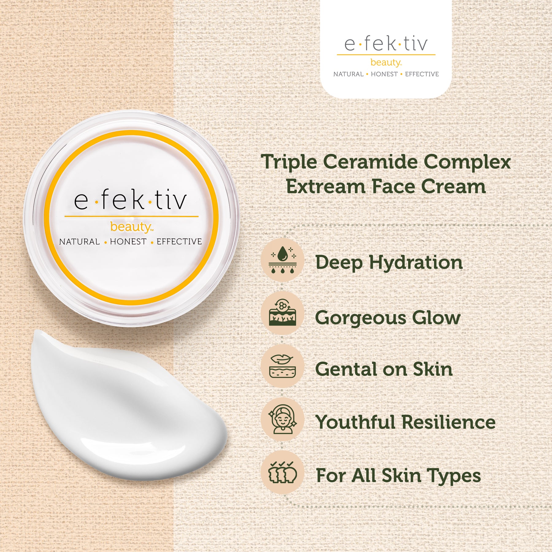 Our incredible product – the efektiv beauty Triple Ceramide Complex MLE Barrier Extreme Cream. This cream is specially made to meet the hydration needs of people with dry skin, providing long-lasting moisture and relief.