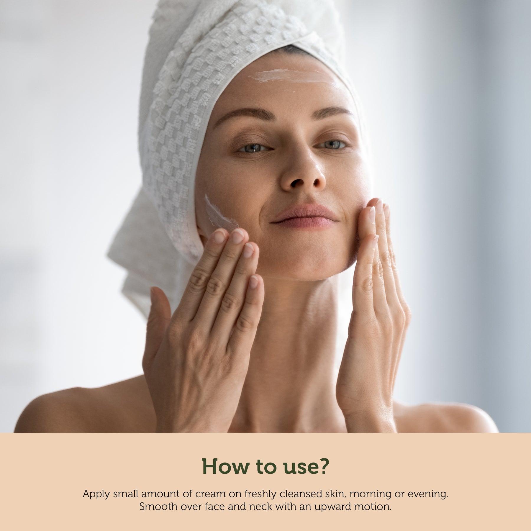 Gently massage the cream over your entire face and neck using upward motions until fully absorbed.